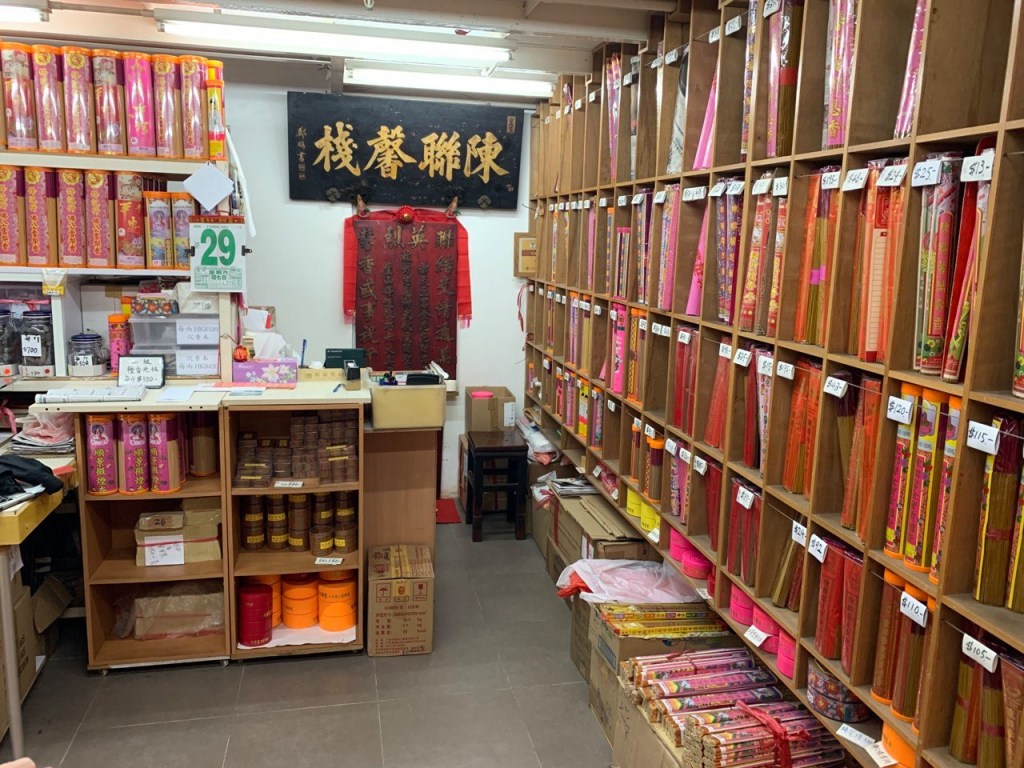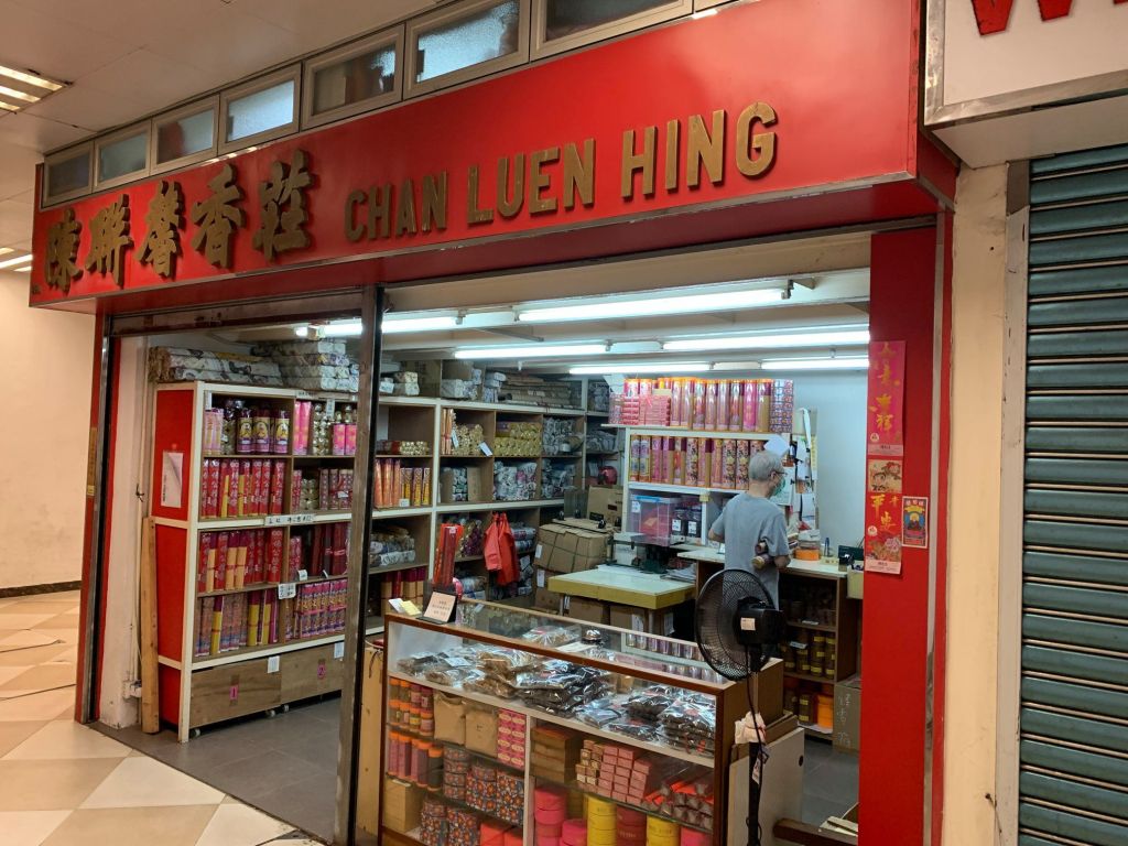 百年香莊陳聯馨,隱於石塘咀住宅商場內,幸得友人指點,方知老店所在。陳聯馨香莊創於澳門而後設分支於香港,初於皇后大道西經營,後遷至住宅商場內,現址毗鄰民居,有利零售業務。老店搬遷後,或多或少會失去部份特色。陳聯馨舊店本有一對龍香鎮門,遷址後卻未能保留,甚為可惜。