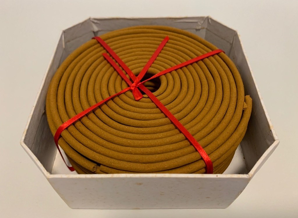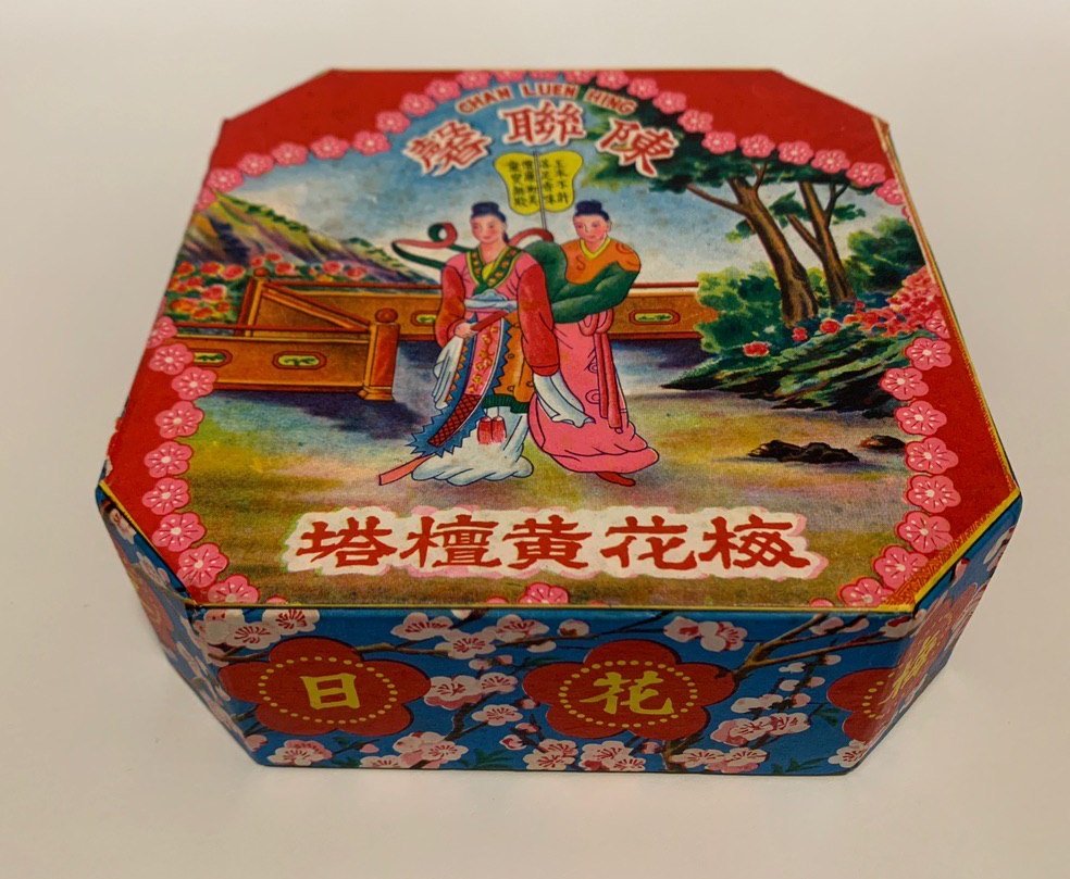 除了茄楠香外,亦買了一盒舊包裝的梅花黃檀塔,不知此香氣味如何,純粹為包裝所吸引而買下,八角型硬紙盒面印上中式畫案,盒側的梅花圖案在碧藍底色襯托下,美觀大體。店內舊包裝的黃檀塔已所剩無幾,新包裝換上圓型透明膠盒,古雅略減。舊日香港許多產品包裝,總帶著獨特的本地風格及元素,新式包裝為求塑造「名貴」,設計往往缺乏個性,難怪老派包裝更討人歡喜。