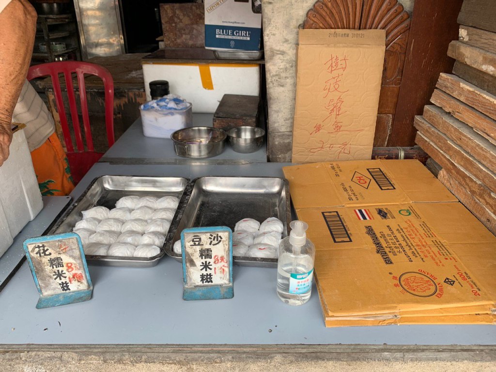 最近一次光顧,才知道老舖還有製作壽桃。每逢遇上慶喜,街坊便會請財叔製作這種客家小食。客家人的壽桃以紅入色,狀若壽桃而以花生作餡。行文之際,仍未看過壽桃的真面目,頓感若有所失。說回茶果和糯米糍,茶果餡料有眉頭和花生兩種,前者鹹後者甜,糯米糍則有花生餡和豆沙餡兩種。偶爾店內會擺賣一些當地的時令出品,例如大樹菠蘿、仁稔醬、糉及桑寄生茶等等。