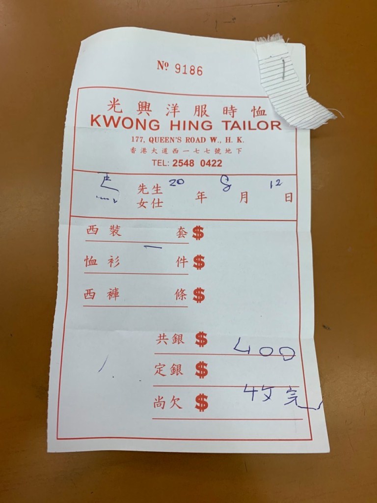 搜集香港裁縫業的資料時,曾看過老合興(1902年)的介紹,於上海創立後遷至香港的百年老字號。交談幾句就知道幾位東主熟諳行情,無論是座落港島的高檔裁縫店,還是於九龍及新界的平民洋服店,對它們的巿場定位及門巿位置均有一定了解。這兩大類裁縫店的目標顧客相異,不過面對著同樣的經營難題。隨著社會轉變,年青人的就業選擇變多,而且現成西裝大行其逆亦令裁縫業的前景變得黯淡,入行人數因而持續減少,終致青黃不接。即使近年Bespoke稍見風潮,但仍不足以帶動裁縫店的生意,港人依然傾向購買現成西裝,難怪經過一些洋服店,往往店內並無顧客,只剩店東和店員呆站渡日。