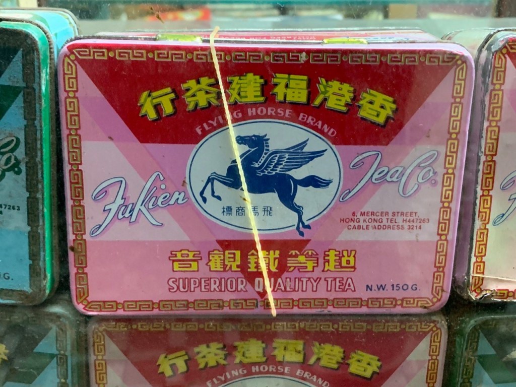 裝潢陳設之外,多種茶葉的包裝亦呈現著港式美學。其中鐵觀音茶王的茶罐以靛青為底色,罐面上下為玫瑰所繞,罐身則飾以金花圖案,配上飛馬商標及商品名號居中,湊合起來效果悅目,並帶出獨特的傳統風格。其實往日茶罐款式更多,各種級別的鐵觀音配上不同顏色及形狀的金屬茶罐。在收銀台旁的玻璃櫃中,擺放著一個褪色的八角型茶罐,隱約看到當初的彩繪花紋,估計曾經綺麗非常。