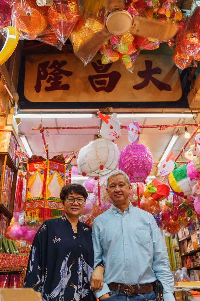 大昌隆紙號坐落熱鬧非常的新填地街街上,「大昌隆紙號」的招牌搶眼不已。踏入大昌隆,我們看到店內各式各樣的燈籠琳瑯滿目、尤其以紅白黃三色的紙兔燈籠及最為傳統的六角走馬花燈高高掛,襯托在大昌隆招牌前尢為搶眼別具風味,它提醒中秋將至,節日濃厚氣氛油然而生,復古的氣氛猶如置身80年代的大時代中。