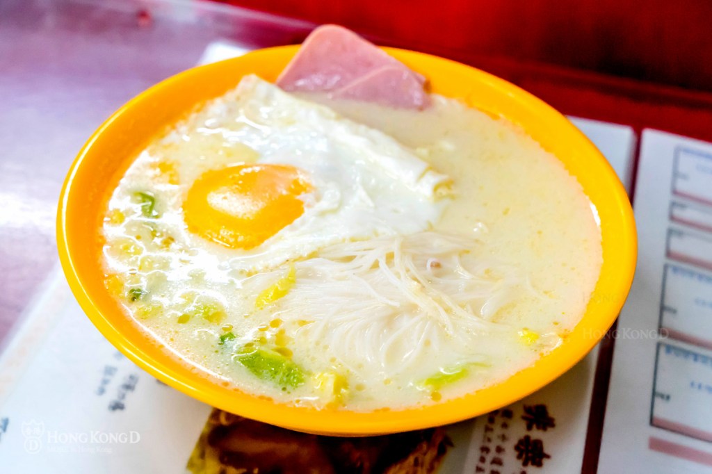 說到食物;海安招牌很多;蔥蛋碎牛多士、粒粒西多士、鴛鴦紅豆冰、熱奶茶、叉燒撈麵、 沙爹牛肉包等… 基本上如果只去一次的話根本不可能把每一道美食都吃過,相對那些遊客必點的招牌,我吃得最多是他的早餐B,火腿米粉另加太陽蛋,的確是普通到不能再普通的食物,就是他們對食多了一點點想法,在湯底裡離奇加了一點忌廉卻出奇的惹味,來貨就算是貴一點,也選上了香港製造的米粉(最後一天才發現連外賣膠盒也是Made in Hong Kong),那隻太陽蛋不論賣相和擺盤他們永遠都是追求保持到一模一樣。