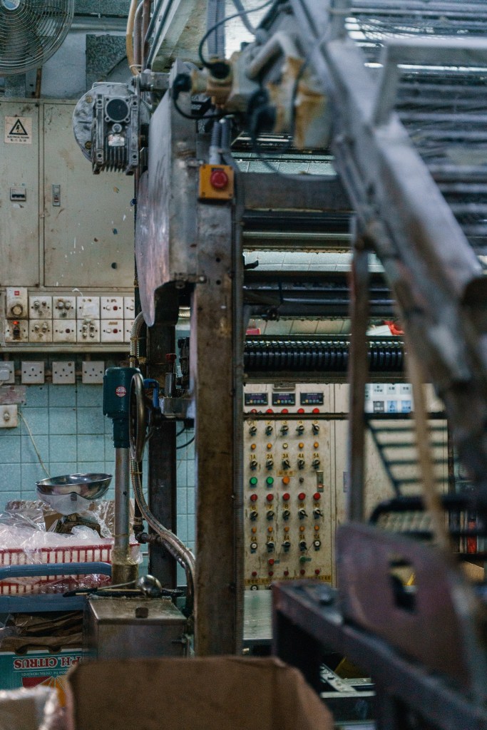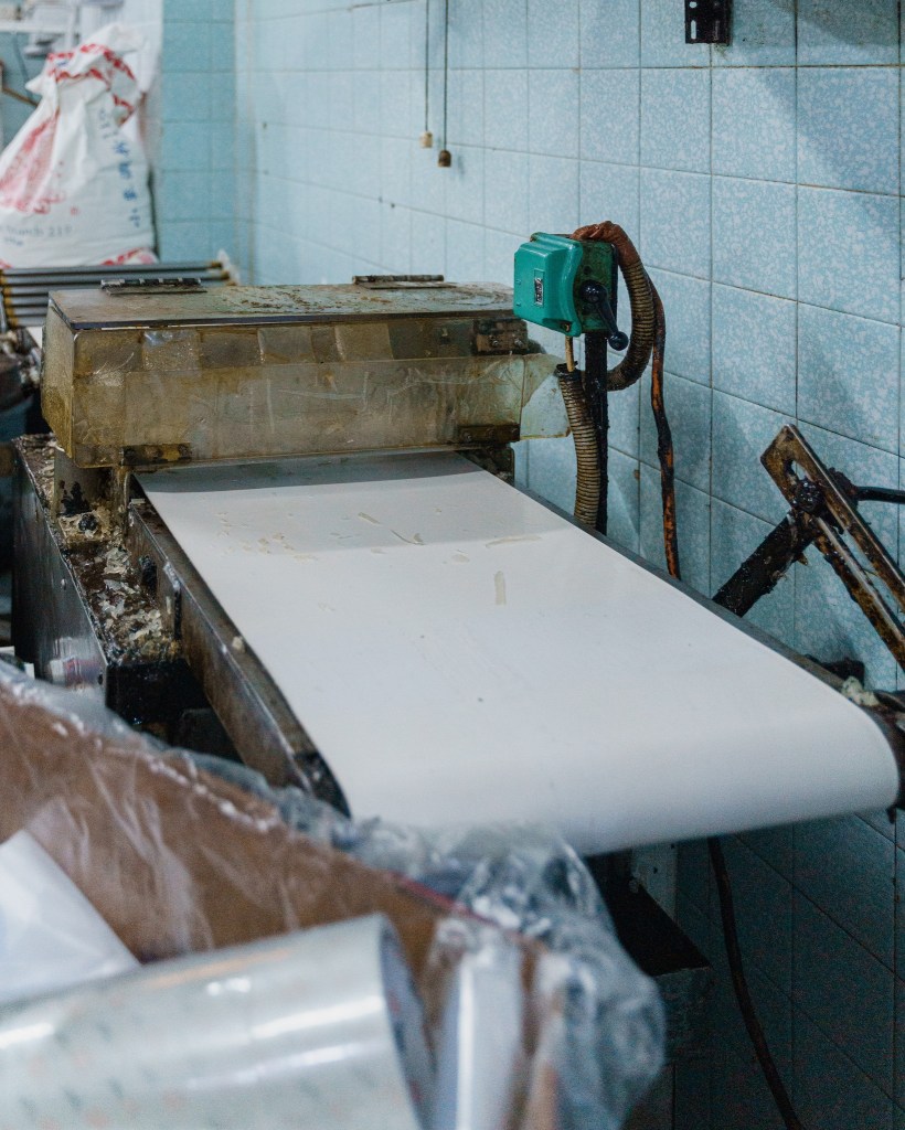 走到後舖只聽到機器的運作聲,放置著的,就是從八十年前到現在仍然運作的製麵機器。