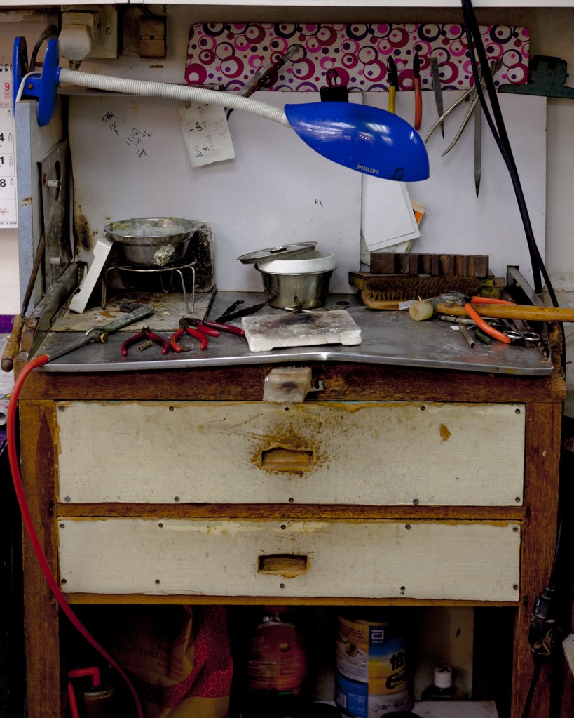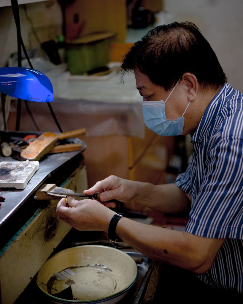 城巿發展急促,行業滄海桑田。昔日香江,黃金十両,金器數十,足可開舖;今時今日,金鑽滿櫥,琳瑯滿目,排場方足。從前學徒制見於社會各行各業,打金亦不例外。張偉南先生指出,打金學徒學藝需要五年,方可合格滿師。之後仍需不斷琢磨工藝,批花手工才能日益精進。不過隨著機器普及,行業缺乏新血入行,電鑄逐漸取代手工。目前和盛只餘一件全人手製的足金髮釵,早已列作非賣品,釵上花紋相當精巧,出自擁有三十多年批花功力的工匠。可惜人手工藝已是明日黃花,大勢難以逆轉。