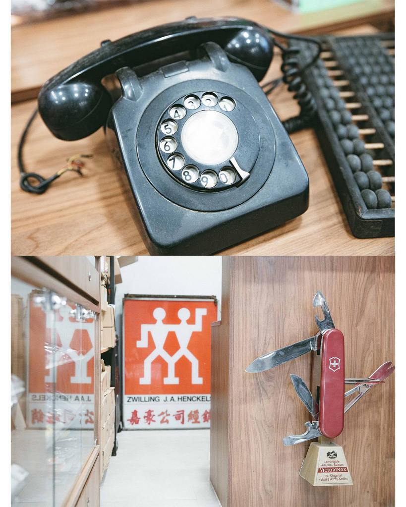 甫接手時店面擺設較雜亂無序,乍看有點像五金舖,曾有路經街客詢問是否有配匙服務。近年疫情影響街道人流,嘉豪公司趁此重新翻修舖面。雖然裝修沖淡舊舖的樣貌,從前掛在店外的招牌也因大樓外牆維修而拆卸,但Sam仍選擇將其保存於舖內,透過物件呼應店舖薪火相傳的意義。同樣保存下來的物品還有往日顧客拿來打磨卻未取回的布剪刀,幾把剪刀的年代已不可考,而其中還有今天罕見的Made in Hong Kong出品。