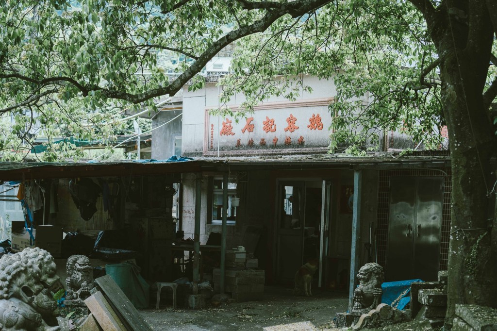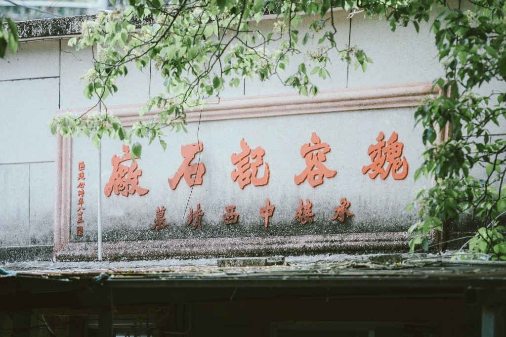 據聞魏容記石廠的招牌由區建公題字,於是決定擇日實地考察,計劃拍照之餘順道訪問老號。乘坐小巴抵達川龍村口,沿著車路步行約十分鐘,即可抵達魏容記石廠。現場觀察書法招牌,可見保養狀態甚佳,四旁樹頭菜盛開,眼前景象賞心悅目。稍為細看石廠招牌,左下方可見「區建公時年八十五」,區氏享壽八十有五,故此題字乃其晚年之作。此外,「魏容記石廠」五字之下刻有「承辦中西墳墓」,業務範疇一目了然。