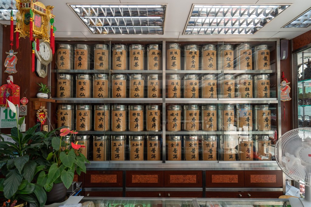 「雲南出產普洱,福建則是鐵觀音和水仙,閩北有水仙壽眉,浙江有龍井。」張老闆看著玻璃門上一排排的茶餅朗朗上口道出。德祥茶莊經營茶葉批發,茶葉到店後經過存放及處理再外銷,除了提供給本地茶樓和食肆外,主要經營外貿生意,80年代主打日本市場,提供大量罐裝茶葉到旅行社,到90年代起發展到台灣及馬來西亞等地。張老闆帶著茶葉向外打拼擴充市場,亦因為茶葉向內鞏固著家庭關係,與兒子阿標關係緊密,除了傳授茶葉及生意上的知識外,也傳承著做茶做人的堅持和認真。「普洱多數飲熟茶,生茶未飲得住,一定要存放味道才會變好。」「又例如鐵觀音必須經過焙火才能去除草青味,用電爐慢慢焙火,才會較易入口」阿標指出茶葉必須用時間慢慢薰陶和經營,做人做茶道理同出一轍。問及阿標對於時代變遷的應對,他堅持守好本業,保留本來營運模式,同時亦會歡迎各類合作嘗試,因為他知道茶葉生態有所不同,漸漸應用於其他範疇,德祥茶莊亦曾為啤酒公司提供茶葉製作手工啤,讓他知道茶葉的應用原來可以更廣更有創意,年輕人喜歡花巧及願意嘗試新事物,更容易透過不同途徑引導他們按觸茶葉文化;問及有否想過讓兒子一樣繼承父業,他一方面希望,但同時知道現今世代必須發展多元化,才能適應環境變化。