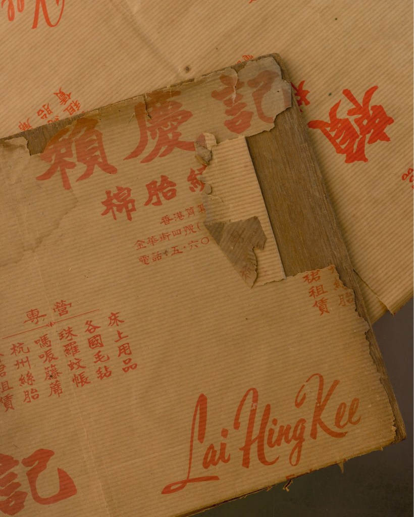 除了手製裙褂,賴慶記兼售其他家用床品。當年賴老先生開辦賴慶記, 會以人手打成輕身鬆軟不悶焗的棉胎,那是一門費時、花心思的傳統手藝:師傅們利用木槌、彈弓等工具「彈棉花」,以平均力度打鬆棉花,再逐層鋪好棉花,然後拉線或鋪紗,還要磨棉定型,最後釘被,每個工序都需要花上不少時間。陳舊的棉胎亦可以透過加工回復原貌。 賴慶記近年仍有保留製作木棉枕頭。 然而,兩者所用的棉有所不同:枕頭用的是木棉,棉被用的是棉花。 相同的是它們皆可透過手藝,把產品重回舊貌、保留功能。以木棉花枕頭為例,隨年月使用、香港空氣潮濕,枕頭內部中空的木綿纖維會逐漸被壓得扁平、吸入濕度而減去彈性,功用變弱;老闆賴華勝分享道,只需把枕頭放於陽光撒下曬晾,即可驅走綿花所吸收的環境濕氣,遇熱澎漲重回鬆軟輕彈; 惟棉纖維始終是天然植物,易受微生物的侵害,引起毛粒式發霉質變,是故店內亦有出售木棉及油柑葉補充包,可用作填補之用。