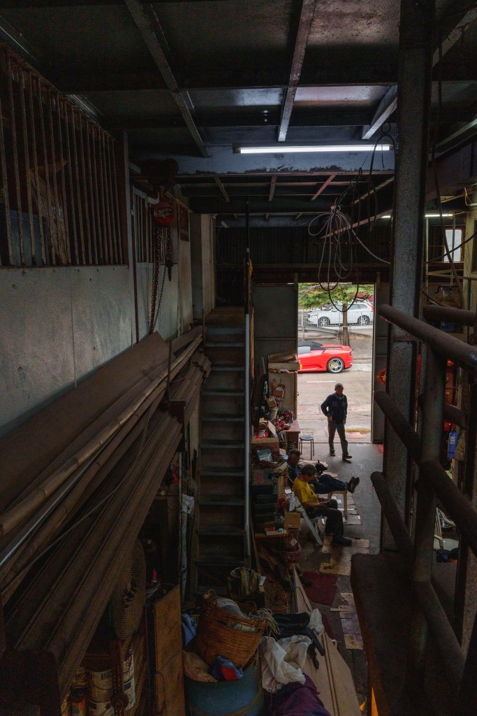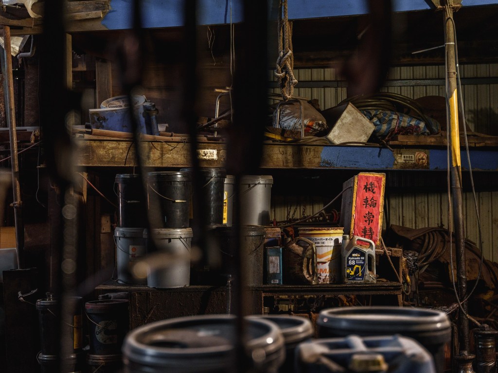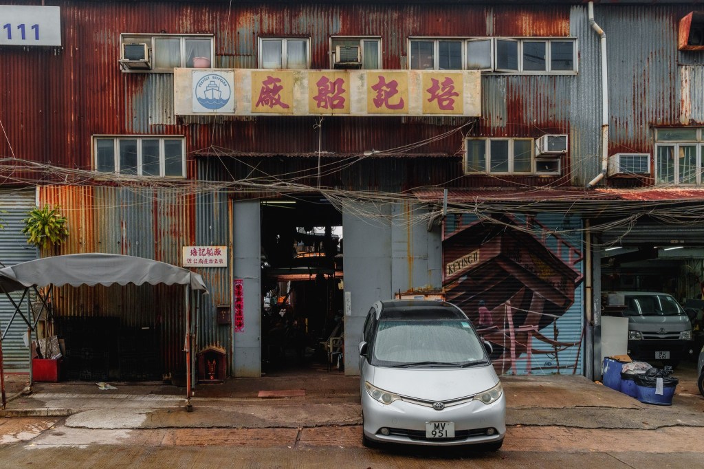 來到筲箕灣,東區走廊呈 S 形走向,先從兩屏住宅之間穿過。這座從銅鑼灣起步的高架橋,於阿公岩拐了個急彎,突然一邊變得開闊,住宅退到對岸,闢出「另一個香港」的生存空間——橋底下的避風塘沿岸,挨著一堆不太光鮮的雙層鐵皮屋,招牌上多有「船廠」二字。影視作品中,主角往往在這些「廢棄船廠」中對決;訪問培記船廠負責人黃桂泉先生後,才知道香港的船廠,不少仍年中無休地運作。