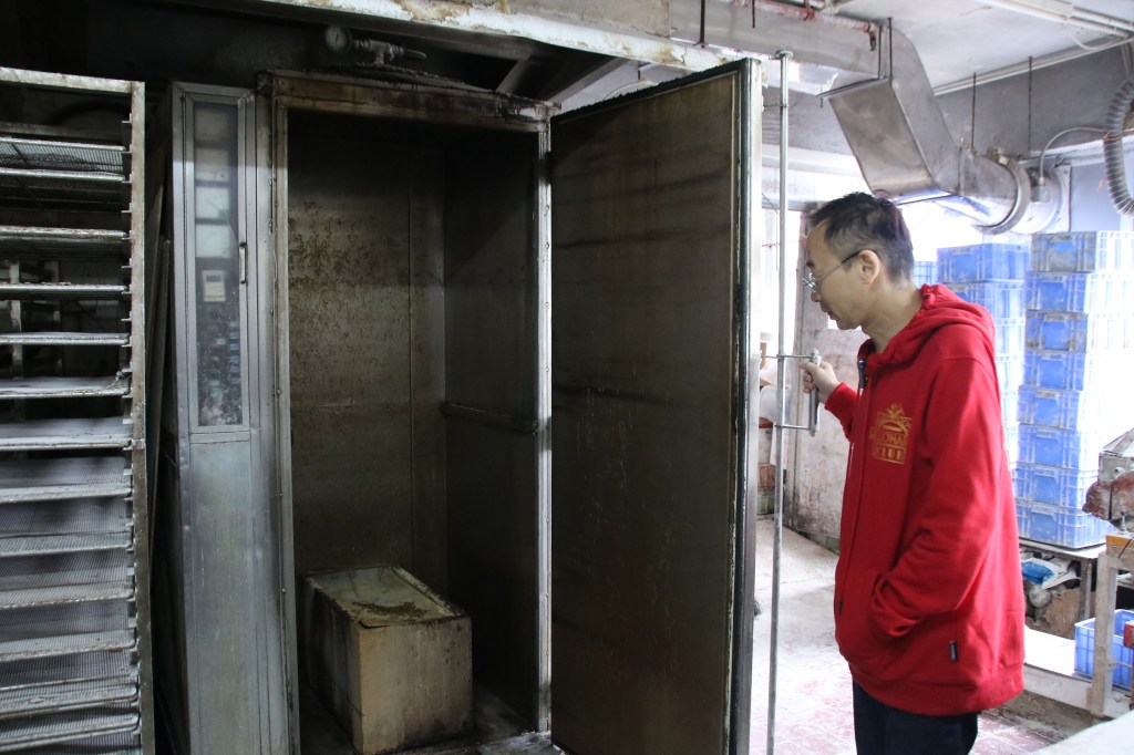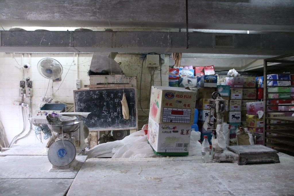 拉開鐵閘,是鋪滿麵粉的機器,位於筲箕灣的佛記粉麵廠房,方寸之地進行製麵、蒸煮、烘乾及包裝等工序,作為香港碩果僅存的食品廠房,空間當然用到盡,卻井然有序。