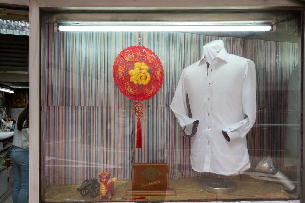 新時恤屋位於佐敦區內一條橫街,店舖沒有花巧裝橫,簡樸俐落的門面更突顯出銅字招牌的氣勢,玻璃櫥窗只陳列着一件具代表性的恤衫,就如一種簡單直接的自我介紹,訴說恤衫品質就令店舖屹立至今的原因。