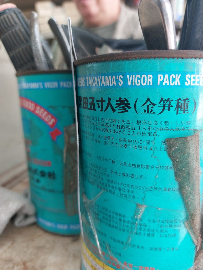 菜種行的櫃檯內放有一列老舊的鐵罐,其中一個寫有:「40天 四九」,Rebecca的哥哥黃老闆解釋,那是四十天長成的菜心,適合四月至九月種植。菜心一直是港人的盤中餐,可想而知這款容易種植的菜種,當年十分受歡迎。