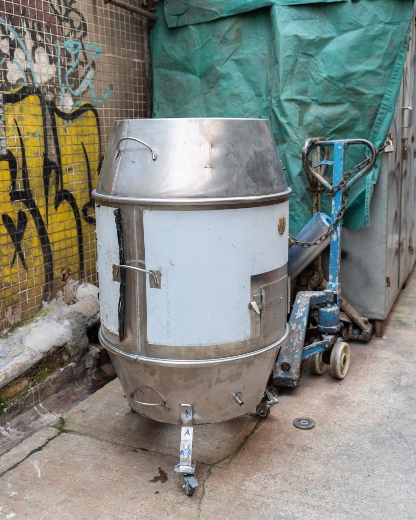自九十年代初,商人漸北上量產平價燒味爐,蔡同盛的本地銷量開始下跌;又也許是受移民潮影響,外銷的生意隨之增加。梁生指過去有荷蘭辦館每月向蔡同盛訂爐,以首都阿姆斯特丹為中心點,再轉售到歐洲各地,全盛時期每月二十個不等。惜近年有內地人到歐洲開業設辦館等相關業務,改為由其他地方供貨,蔡同盛的客源漸轉為獨立的餐廳主理人或燒臘工場。不過時到目前仍有外地客人向蔡同盛訂爐,如日本百年品牌新光堂(Shinko)自2009年起便向蔡同盛訂製十餘個燒鴨爐作銷售,經歷疫情,今年六月蔡同盛兩位鐵匠便花一個半月親手打造十多個燒爐。一般製作太空爐經過切割鋼材,燒焊打磨的工序,需時若十餘天。不同尺寸,以應付不同的燒肉量。蔡同盛多年來傾向與客人溝通交流,並共同協作製成合宜及扎實耐用的爐具。訪問當日何生即場為我們示範為一個三十六吋燒鴨爐安裝滾輪,並配上輪鎖以作固定,方便客人在不用開爐的時候將爐推到一旁,節省店舖空間。畢竟是人手揼作,客製化是一大優點。