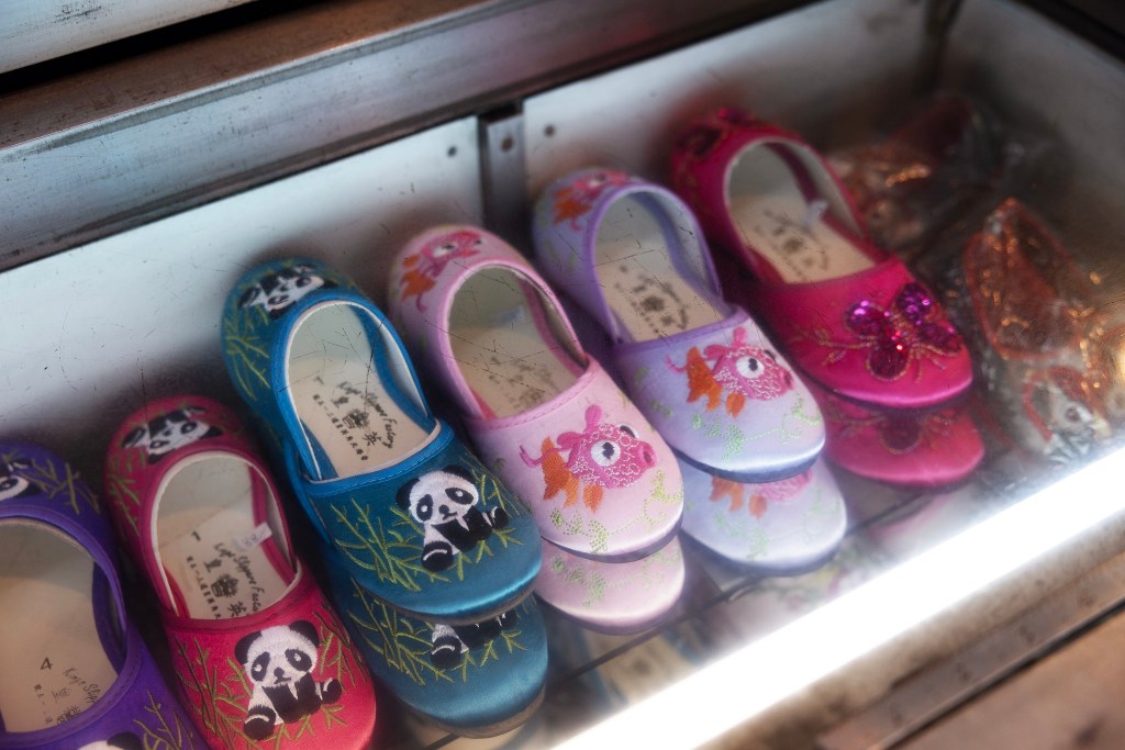 時尚會褪色,風格是永恆。英皇拖鞋的款式經過逾半世紀的沉澱,由原初居家穿着的繡花拖鞋,變成別具舊上海風格的衣着搭配。英皇拖鞋現由盧雲仙及其子打理,隱身在北角英皇道一隅窄長的地舖,裝潢十年如一,招牌以白底襯紅字,其產品在當下流行簡約的文化,仍保留傳統華麗的格調。