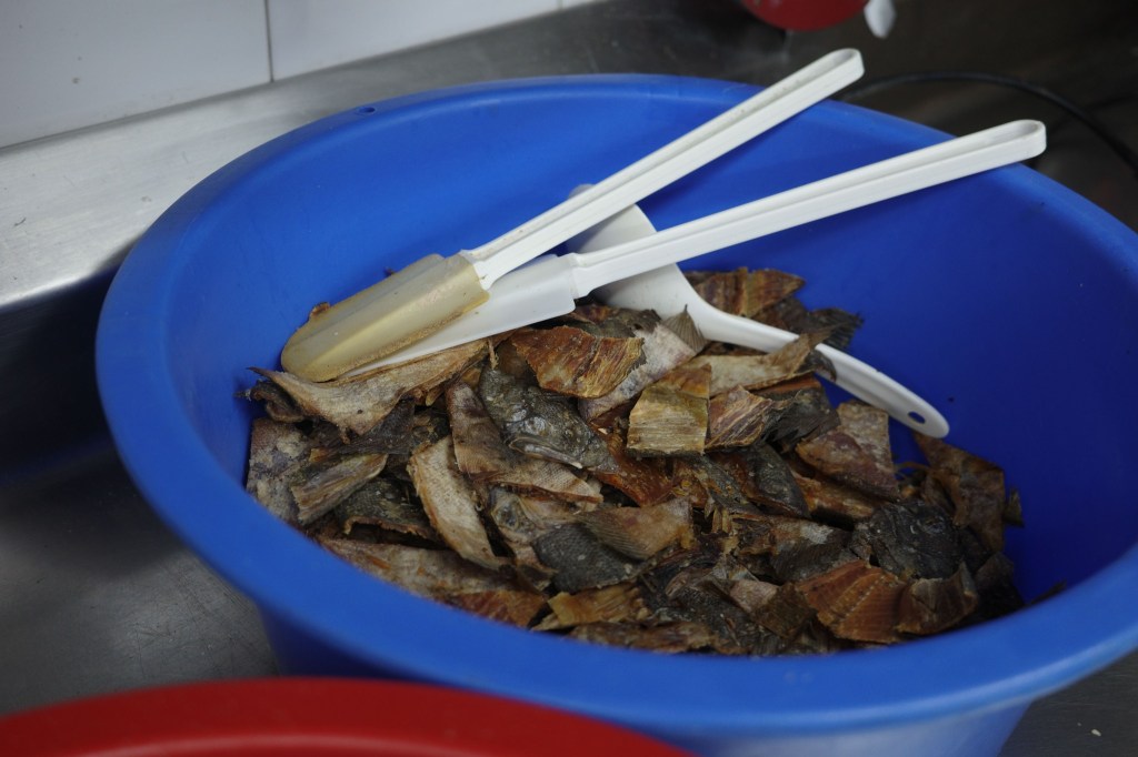 益昌的員工全部都是大澳居民,人手會根據不同季節和時間調整。崔振華仔細分享製作蝦膏和鹹魚的心得。蝦膏的製作要訣是要慢慢下鹽,時間要夠長進行發酵作用,蝦膏才會變香。製作鹹魚都有一定的學問,首先要分辨魚的大小,大魚放在箱底,小魚放在箱面。其次觀察魚的肥瘦和新鮮程度,越新鮮的魚需要醃製的時間越短。溫度亦要掌控得好,醃製過程不能低過攝氏23度,如果溫度太低就無法發酵,也是因為這個原因冬天不會醃製鹹魚。