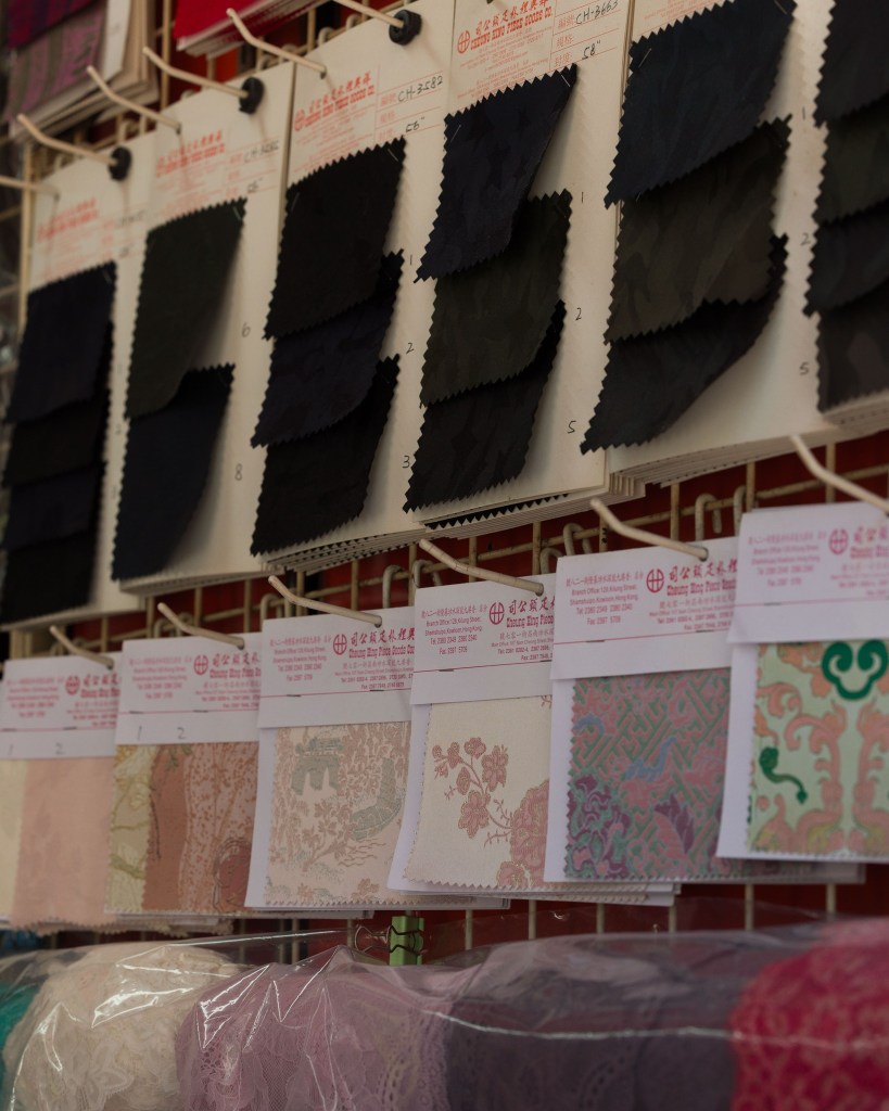 祥興專營裡布。在許多人看來,這藏於衣物內層的輔料並不起眼,但對於一件講究的服裝而言,它卻扮演著至關重要的角色。裡布能夠有效保護面料,使衣物更為耐穿;也能讓人貼身穿著時倍感舒適,倘若衣物缺乏裡布,在汗濕後往往會直接黏附皮膚,且有刮擦之感。