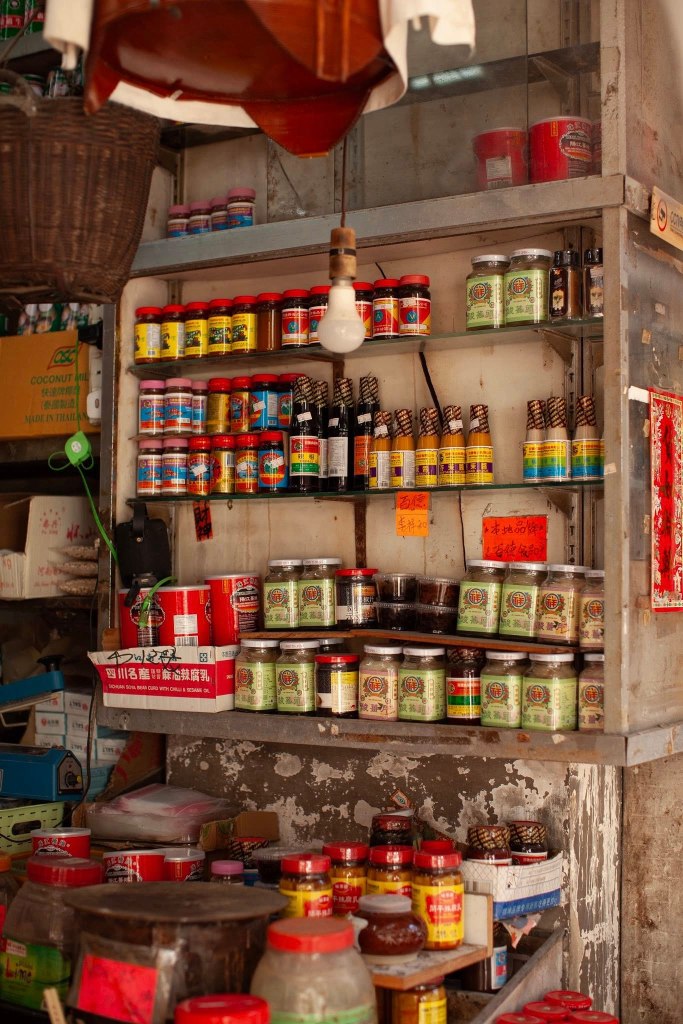 一進入舖面,就能看見很多不同品牌的醬料,而且往往不是平日超市常見的大牌子。成興隆主要銷售傳統本地品牌,例如百德食品、同德興食品及李祥和等等。這些品牌的廠房均設在香港,是上一代已經建立的人脈,關係延續至今並一直向他們入貨。看到成興隆售賣哪些貨品,就大約猜到店舖與哪些品牌的老闆相識。超級市場鮮有見到這些牌子的蹤影,因為超市一般會收取上架費,而且要包退貨和換貨,對於相對小本經營的本地品牌較為吃力,所以通常只會在雜貨店看見。這些牌子各自有自己的招牌貨品,客人會直接向成興隆查詢,老闆阿成也會輕輕指導,並向他們推薦烹調的食譜,例如百德最著名的蝦醬、同德興的辣椒醬,他對烹調方法都琅琅上口。