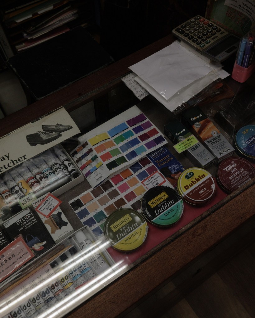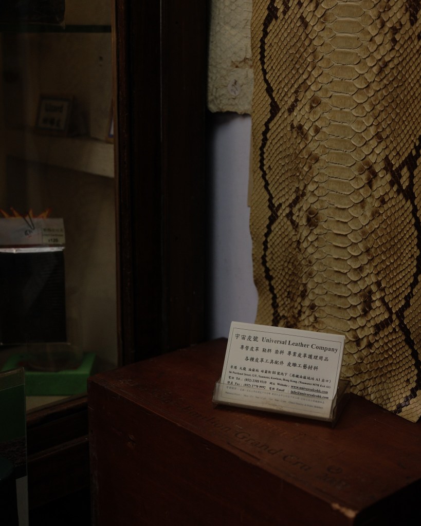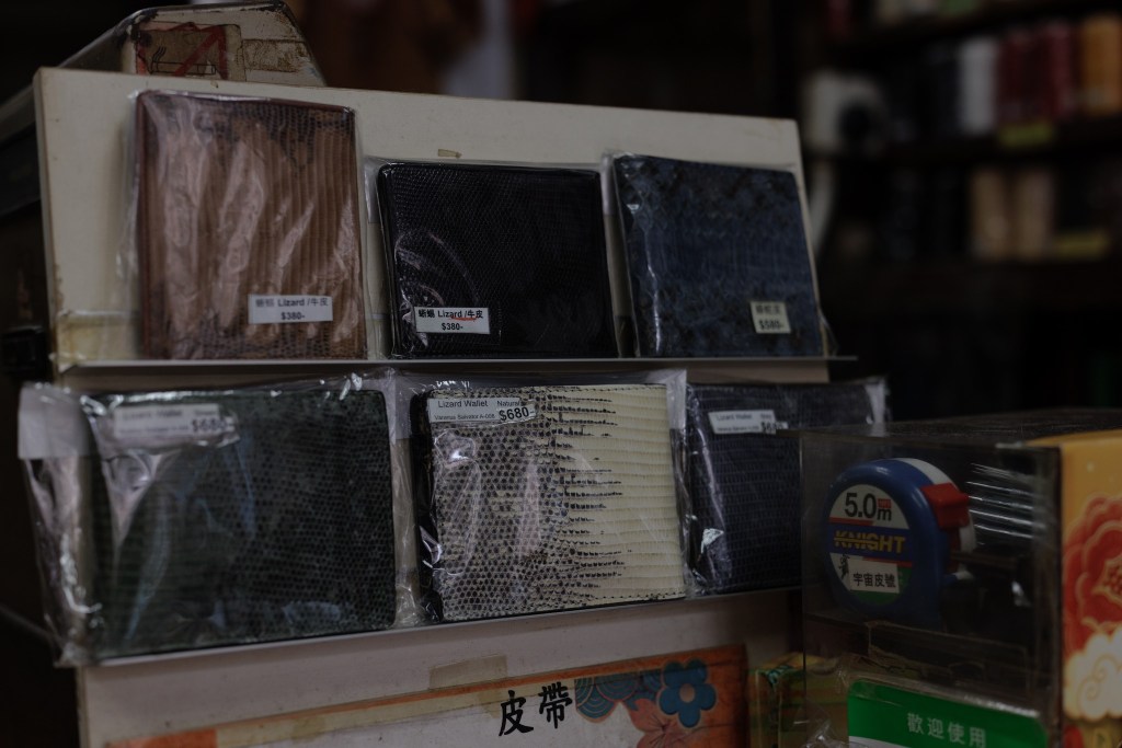 店舖一隅,還寄賣一些銀包、手袋等手作皮具,它們均出自幾位年過七旬的香港老師傅之手,不過,無論是這些種類繁多的舊日皮料,還是老師傅們碩果僅存的手工製品,如今都已乏人問津。或許這印證了一個無奈的現實—— 即使宇宙皮號經歷了數次靈活轉型,最終仍難抵禦時代的巨輪。