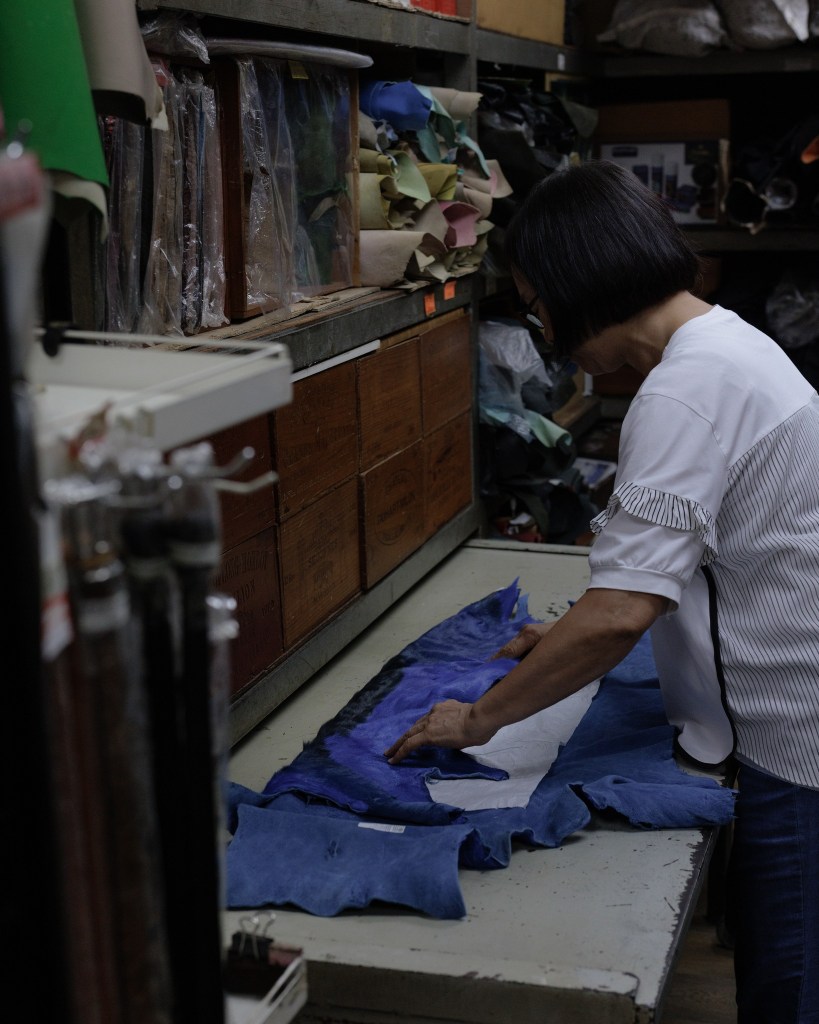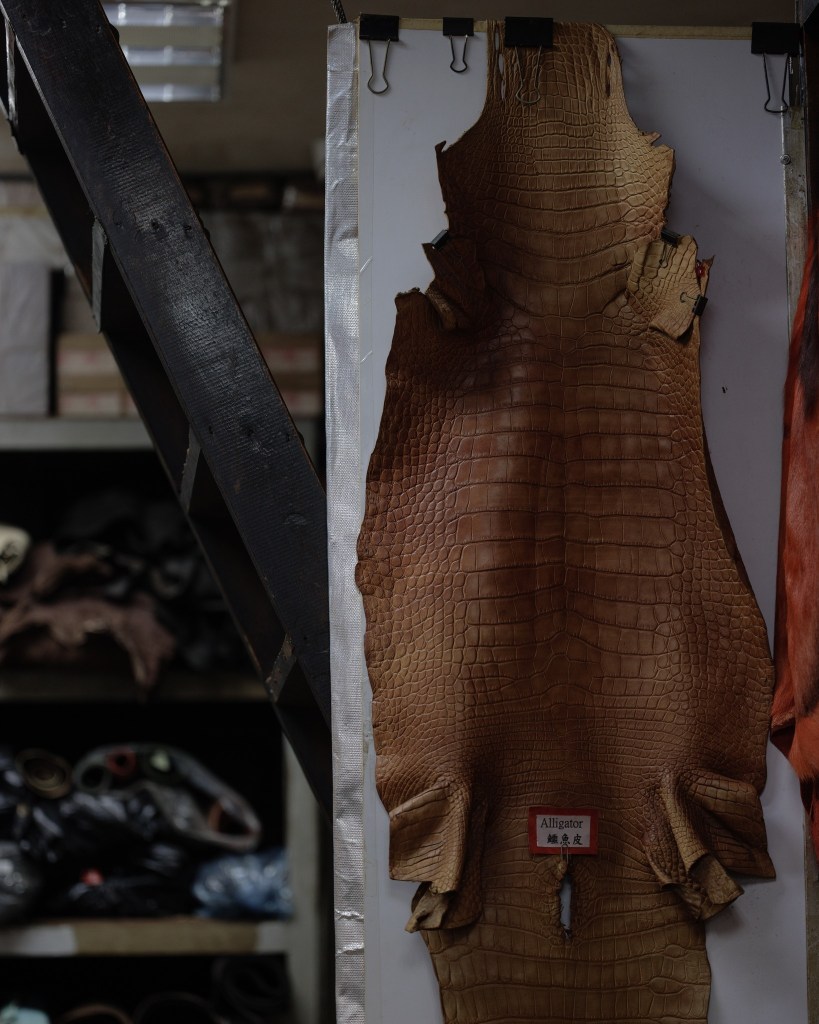 店舖庫存的種類不止於此,還囊括了各式珍稀皮革。當中有向來矜貴的短吻鰐魚皮,以及蟒蛇皮、蜥蜴皮,甚至是印尼科莫多龍皮等。這些頂級皮料的用途極為廣泛,除了常見的手袋、皮帶外,也曾用於製作眼鏡框邊飾。甚至有室內設計裝修師傅把牛皮當作牆紙、地毯來鋪設的例子,創意無限。