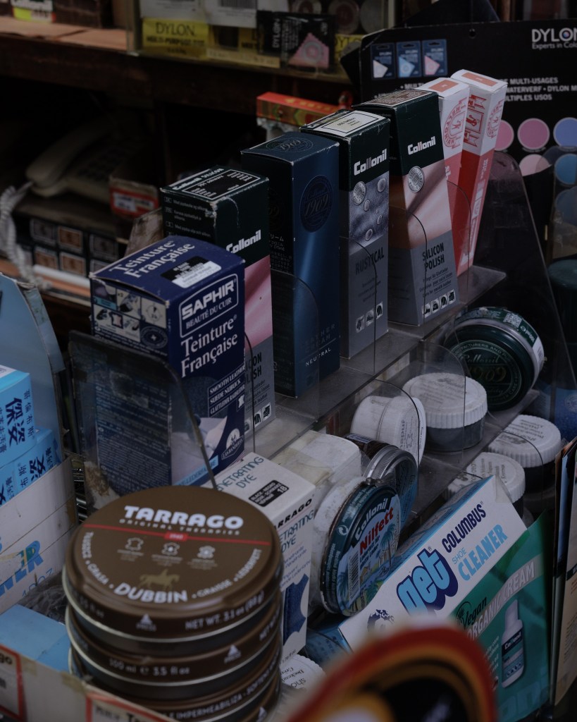 許多名牌手袋常用的植鞣革,若錯用油性太強的貂鼠油,油分會迅速滲透,留下無法復原的深色油斑,因此必須使用質地「輕身」的天然植物護理乳液保養,才能在滋養的同時保持原色。相反像爬山靴一類的戶外鞋履,其皮質就需要油分豐厚的滋潤膏來保護。店內還有一些高效納米防水噴霧,除了應對香港潮濕的雨季外,亦有不少客人為了去旅行滑雪而特意到來添置產品。
