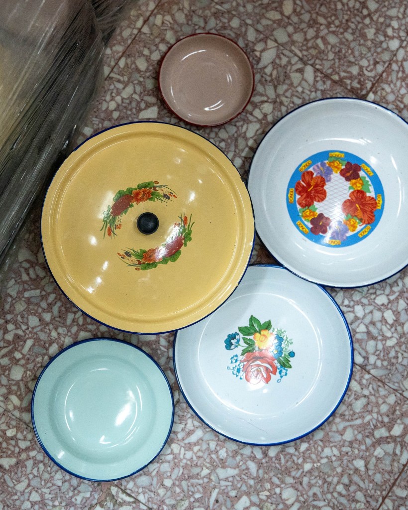 朱榮記用盡店舖的每一寸空間,貨品陳列錯落有致,每當有客人查詢,朱老闆都能準確地從某個角落取出客人想要的貨品。之所以把貨物層層交疊,從地板遍佈到天花板,他解釋只為盡量做到「一目了然」,令顧客能一覽同類貨品,輕易比較異同。從店門前、店中央到走廊深處都擺滿不同類別的貨品。雖然沒有像超級市場那般掛上指示牌,排列卻與日常起居生活不無關係。新屋入伙要先做打掃,打掃也是最日常的家務,故掃把垃圾鏟等清潔用品就在門口;入到屋內就會喝水喝茶,所以這裏有水杯、暖壺、茶壺等,而易碎的玻璃和瓷器放在裏面不會常常碰到的地方……聽過朱老闆解說,即能略懂其規律。店內雜貨應有盡有,訪客初到容易有一種目不暇給,不知從何開始看起的感覺。朱耀昌夫婦顧店多年固然熟悉,但也有其一套思維才能將所有貨物清楚記住。
