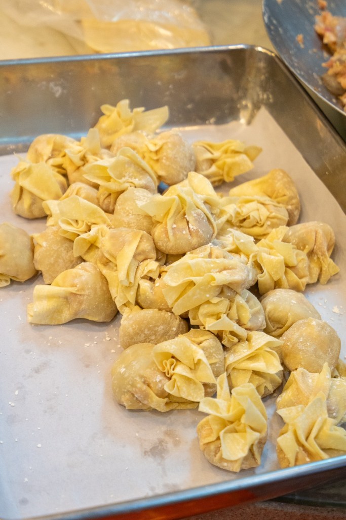 劉森記以人手製作的鮮蝦雲吞麵及蝦子撈麵最為人熟知,從拌餡料開始每一個步驟都不馬虎。雲吞內有蝦和豬肉,水餃的餡料更加豐富,另外還有筍絲、冬菇絲和木耳絲。由於每一隻蝦大小不一,要確保每一顆雲吞和水餃都有一隻完整的蝦,餡料的分量和擺放平均都需要依靠人手及經驗,機器沒有辦法取代。除了餡料外,餃子皮和麵底的竹昇麵都是自家工廠做的,只有在產量趕不及的情況下才會向外取貨。